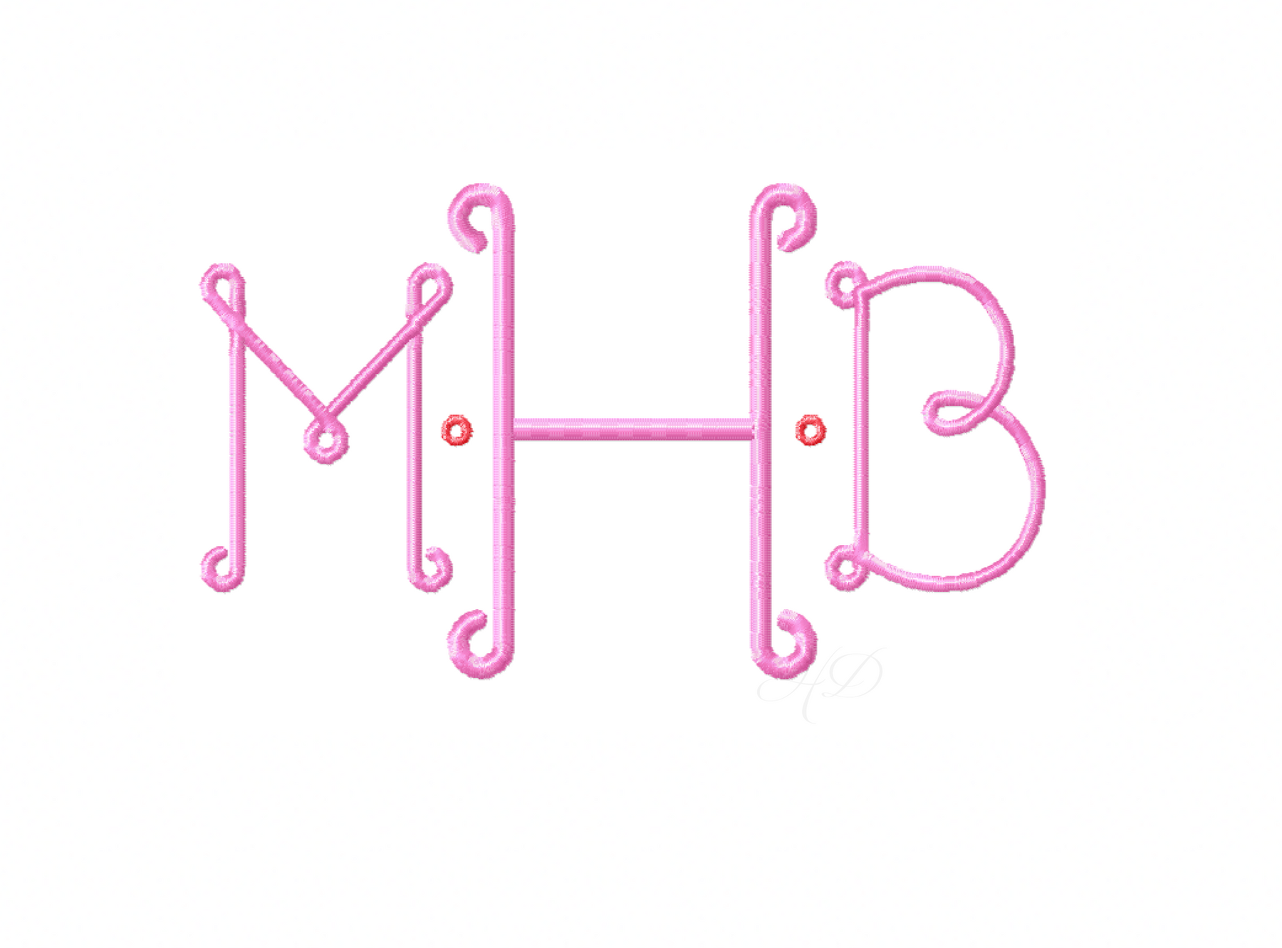 The Ruby Jane Embroidery Font monogram is a layered font in both fill, and satin stitches.
